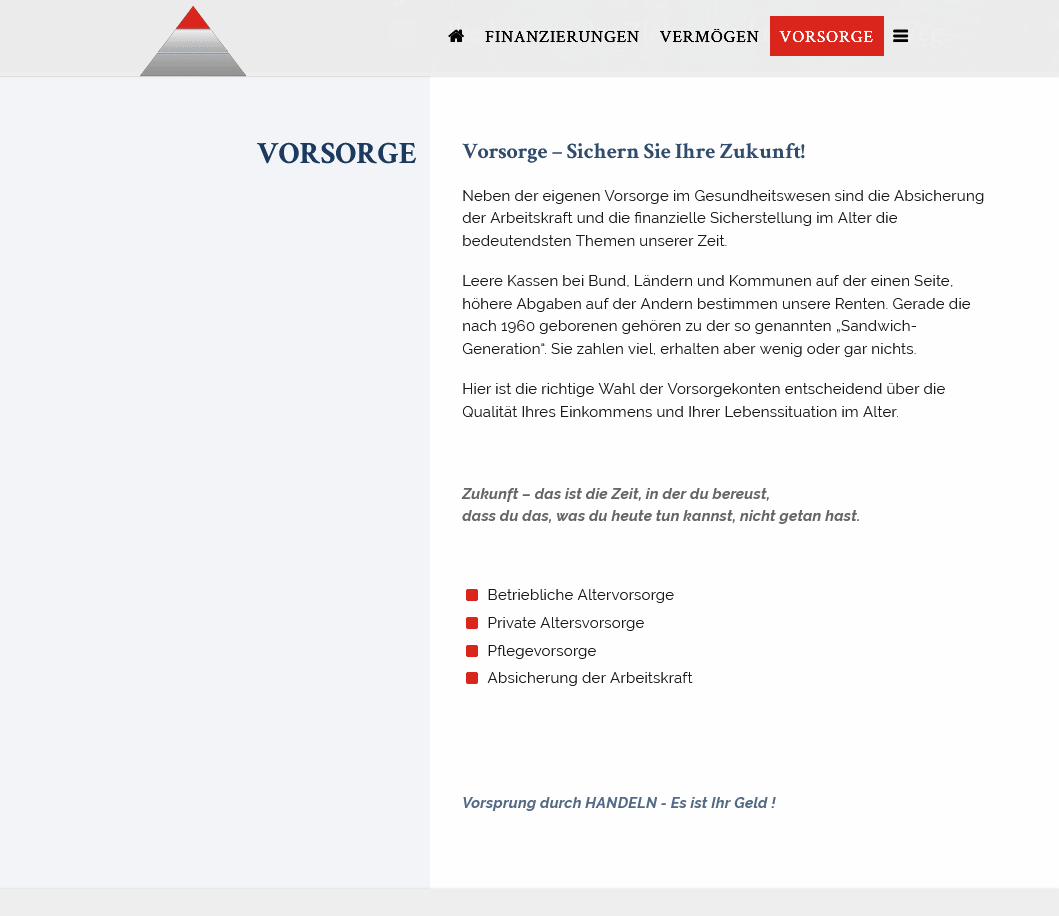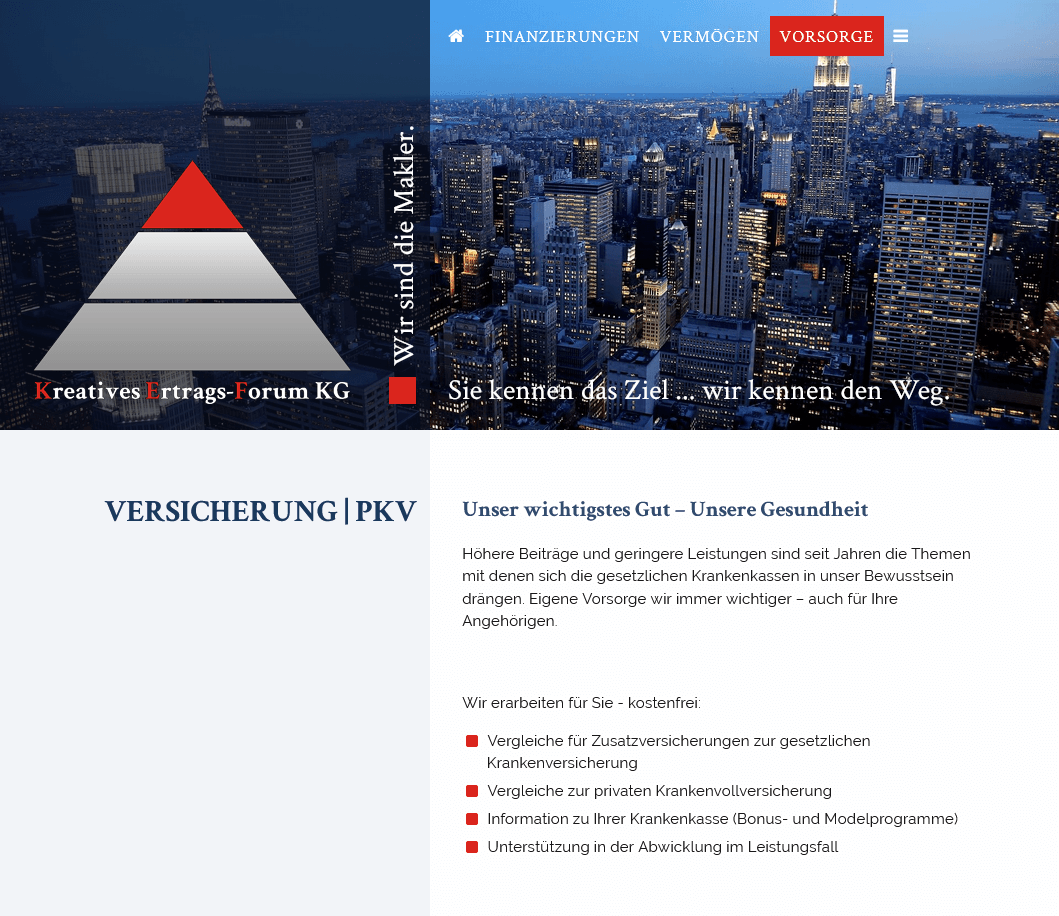 Für ein Beratungsunternehmen im Bereich Finanzen, Versicherungen und Vorsorge wurde eine übersichtliche und professionelle Unternehmenswebseite entwickelt. Ziel war es, die verschiedenen Beratungsleistungen klar darzustellen und Interessenten einen schnellen Einstieg in die Themenbereiche zu ermöglichen.