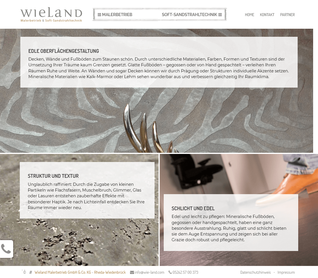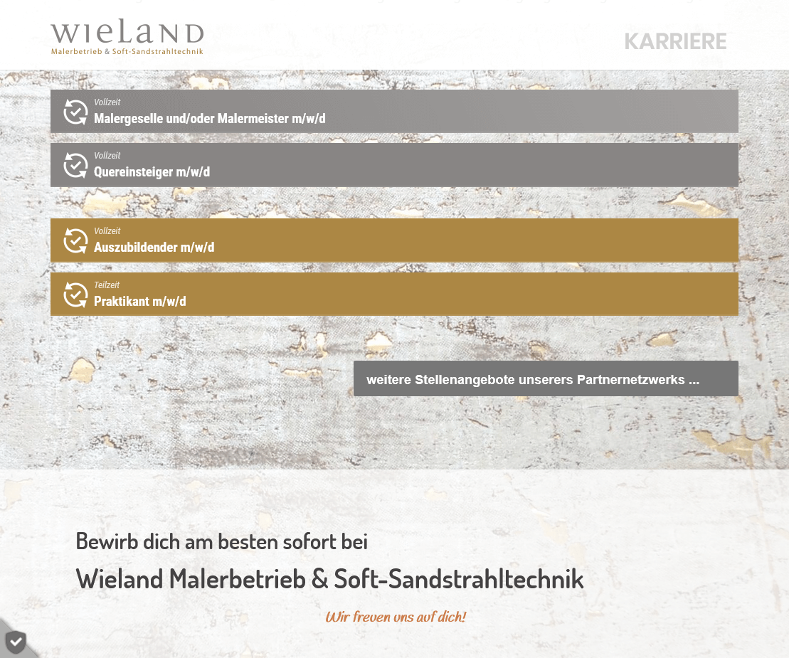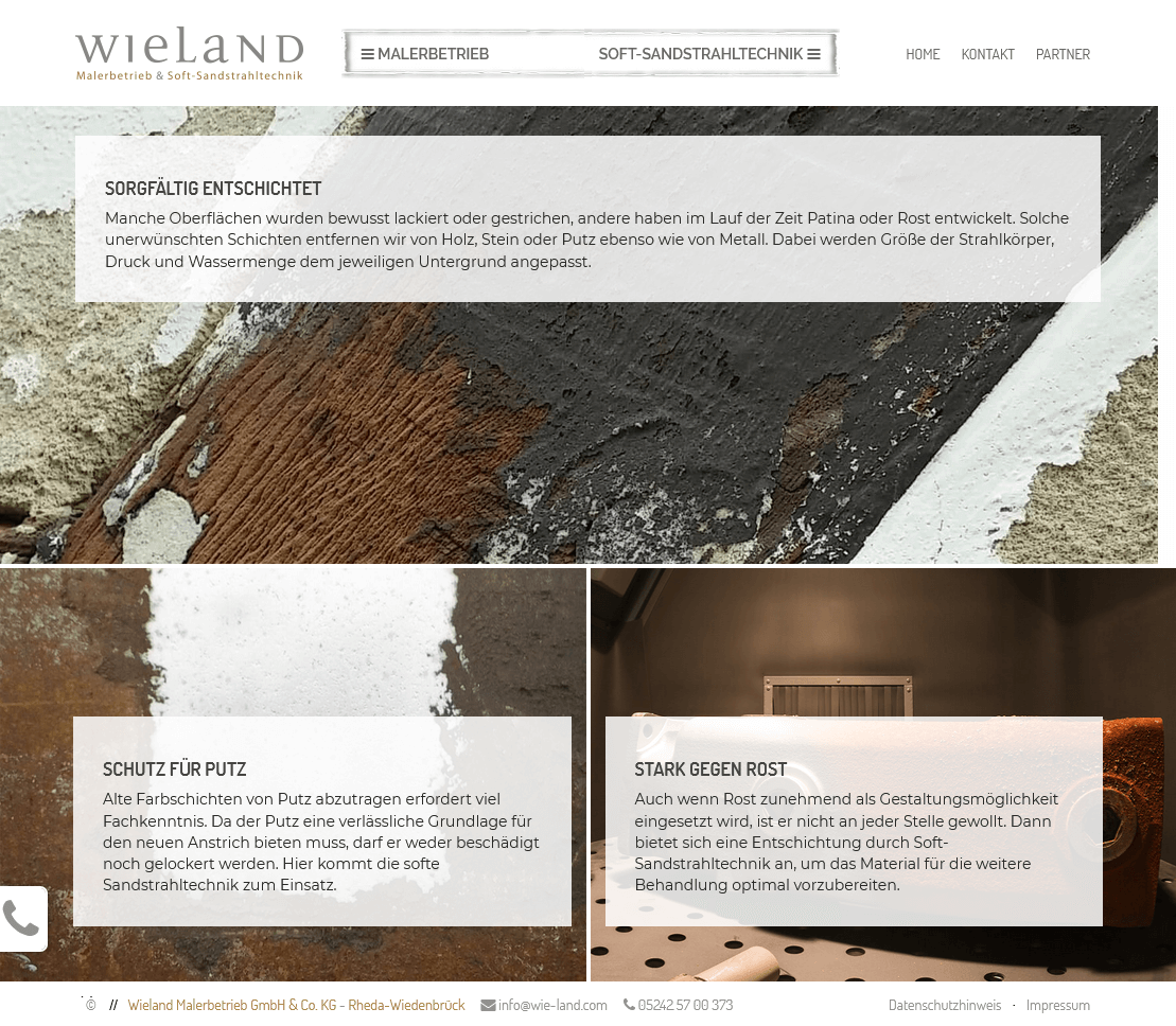 Für den Wieland Malerbetrieb aus Rheda-Wiedenbrück wurde ein technischer Relaunch der bestehenden Webseite umgesetzt. Das Layout war vom Kunden vorgegeben und sollte exakt in der gewünschten Form funktionieren – eine Herausforderung, da die Struktur der Seite auf einem speziellen Box-Layout basiert.