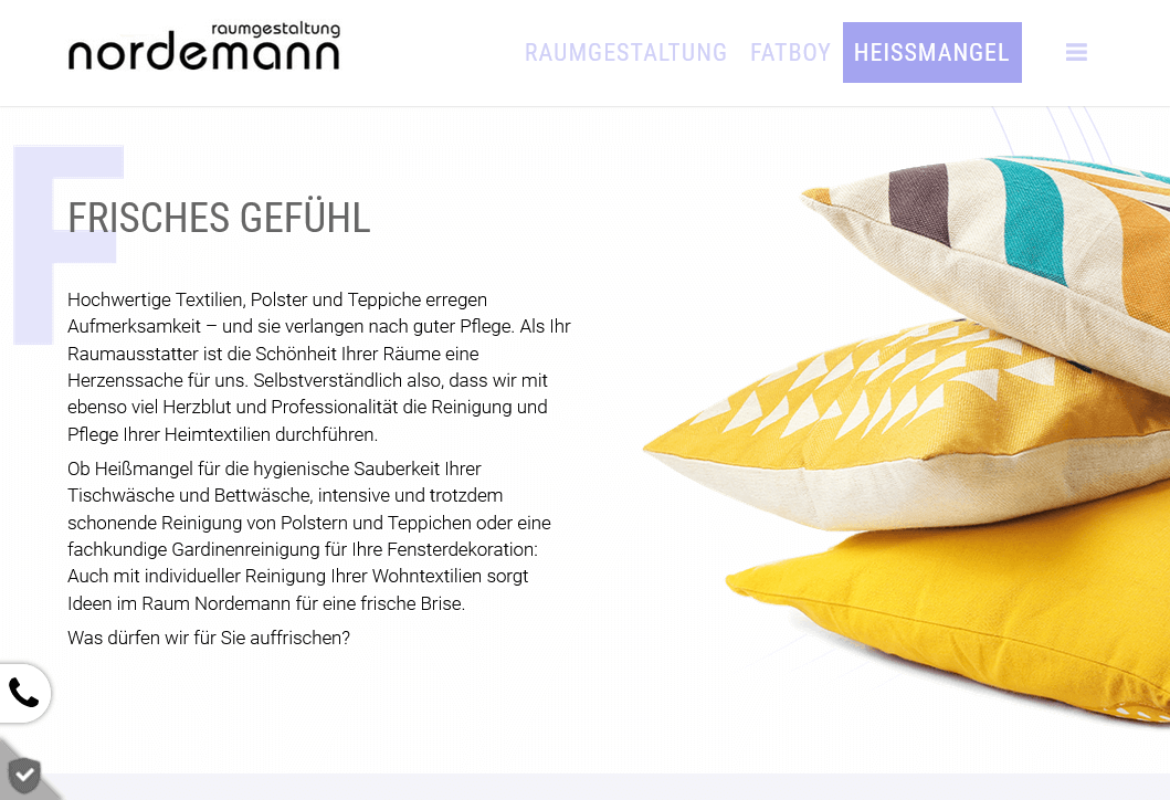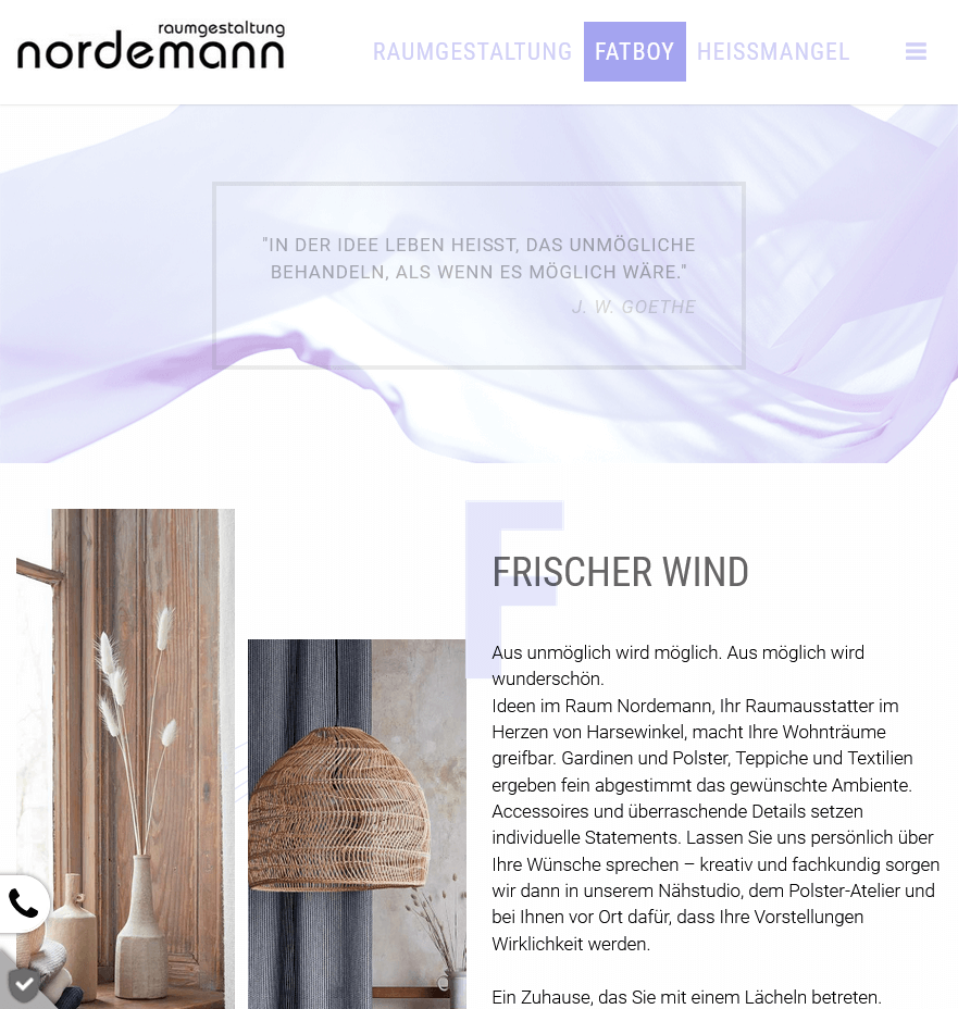 Für den Raumausstatter „Ideen im Raum“ aus Gütersloh haben wir die bestehende Webseite technisch neu umgesetzt. Die vorherige Seite stammte noch aus dem Jahr 2005 und entsprach weder optisch noch technisch den heutigen Anforderungen. Ziel des Projektes war ein moderner Webauftritt, der die Arbeiten und Gestaltungsmöglichkeiten des Unternehmens anschaulich präsentiert.