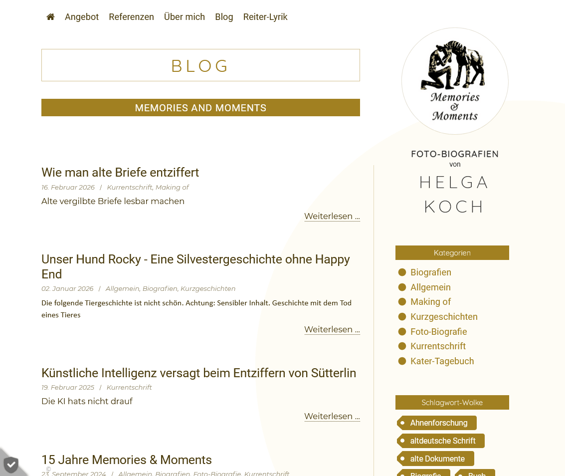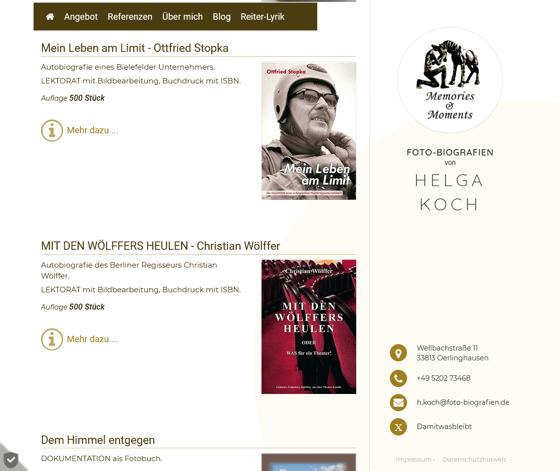 Für das Projekt „Memories & Moments“ entstand eine Webseite, die sich ganz dem Festhalten persönlicher Lebensgeschichten widmet. Das Angebot richtet sich an Menschen, die ihre Erinnerungen, Erlebnisse und Familiengeschichten in Form hochwertiger Fotobiografien dokumentieren möchten.