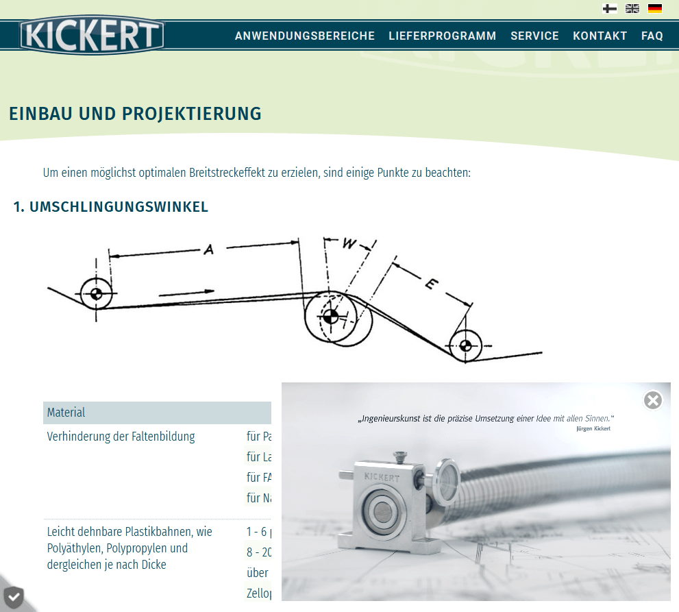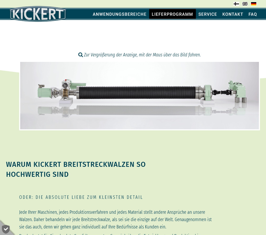 Für die Kickert Breitstreckwalzen GmbH aus Leopoldshöhe entstand ein neuer Internetauftritt als Ersatz für die veraltete Unternehmenswebseite. Das Unternehmen ist auf die Entwicklung und Produktion von Breitstreckwalzen spezialisiert und beliefert Kunden im internationalen Maschinenbau.