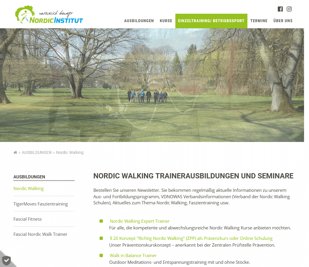 Für ein Institut im Bereich Nordic Walking, Ausbildung und Gesundheitsprävention wurde eine übersichtliche und informative Webseite entwickelt. Ziel war es, sowohl Teilnehmer von Ausbildungen als auch Interessenten für Seminare und Outdoor-Programme gezielt anzusprechen.