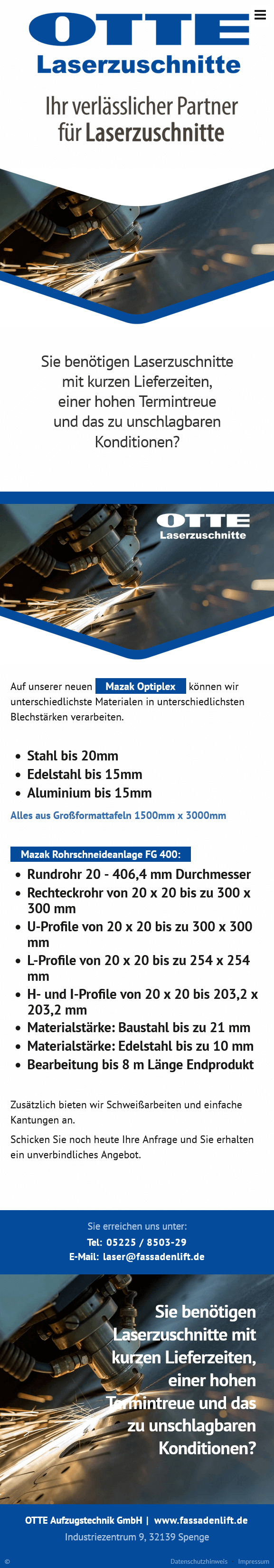 Der Onepager konzentriert sich bewusst auf eine klare und direkte Kommunikation der Leistungen. Neben technischen Informationen steht vor allem die schnelle Kontaktaufnahme im Vordergrund, damit Interessenten unkompliziert eine Anfrage für Laserzuschnitte stellen können.
